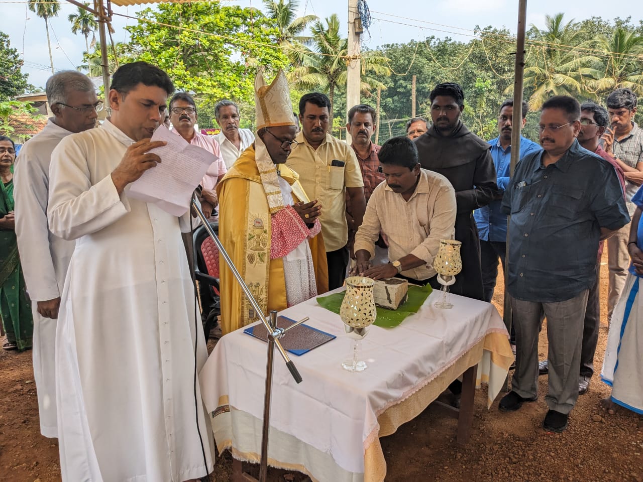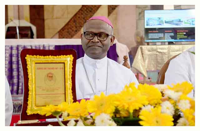 Retiring Teachers are being honoured by Rt. Rev. Dr. Selvister Ponnumuthan, the Bishop of Punalur